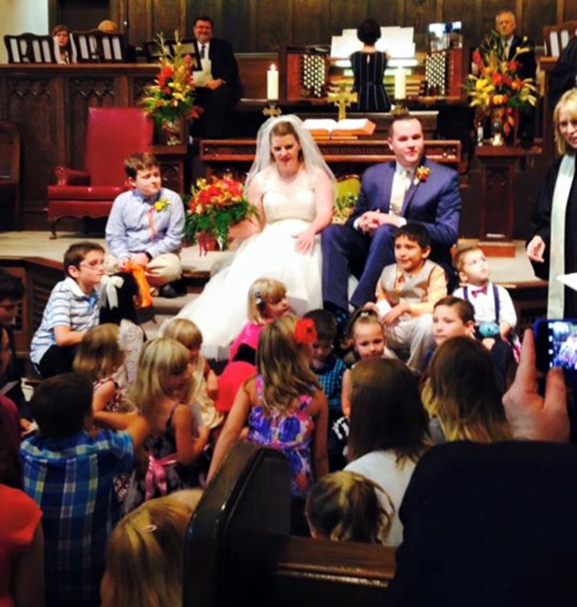The dozens of children attending their wedding.