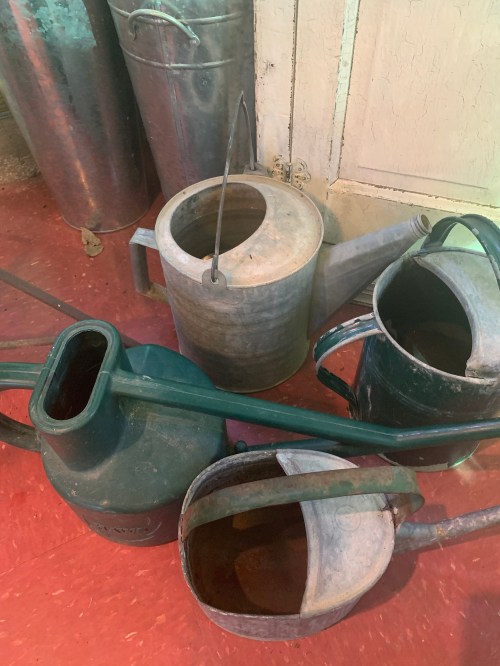 Watering cans for all the baby plants in the garden house